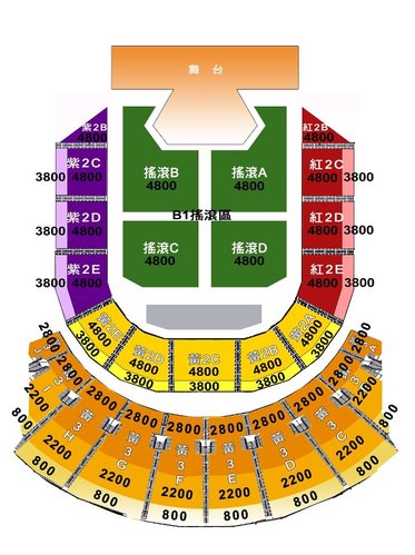目前有 搖滾B區(入場序號40幾名喔) 2F 4800 黃2B區第三排 跟 2F 3800 黃2D區 13排